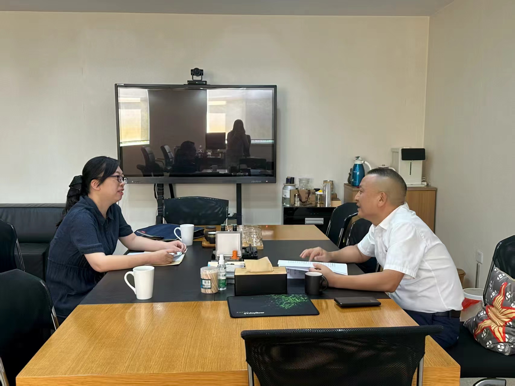 9月2日,院党组成员、政治部主任周芳走访省人大代表、孝感华工高理电子有限公司总经理聂波。